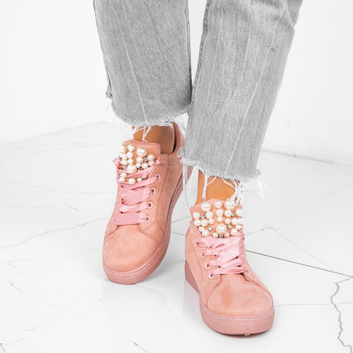 Różowe tenisówki z perełkami i cyrkoniami Cecilyn - Obuwie