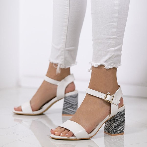 Białe sandały na ozdobnym obcasie Silvia - Obuwie