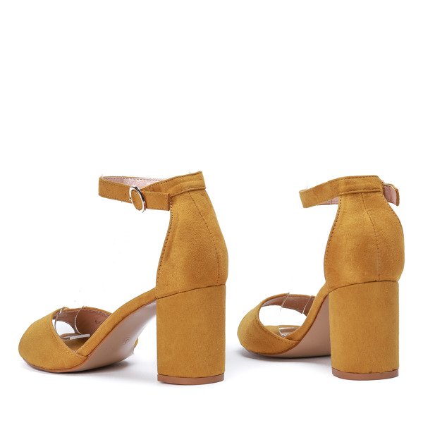 Żółte sandały z eko - zamszu na słupku Arrietty - Obuwie