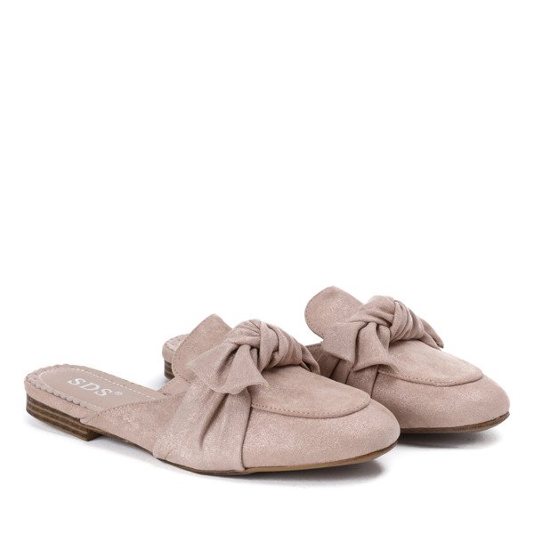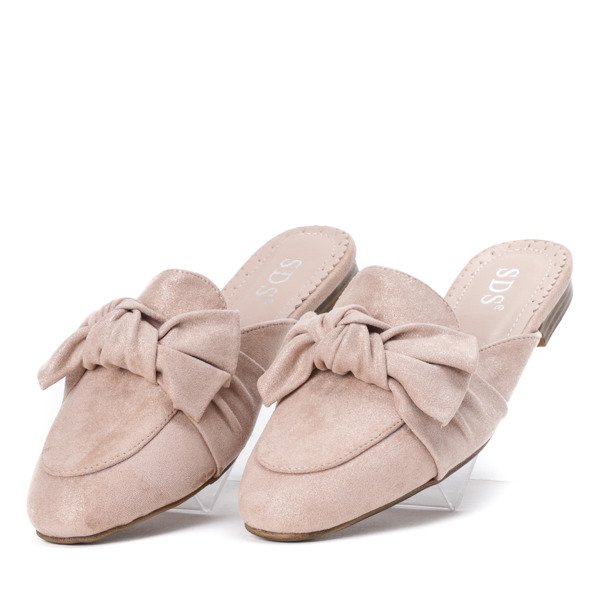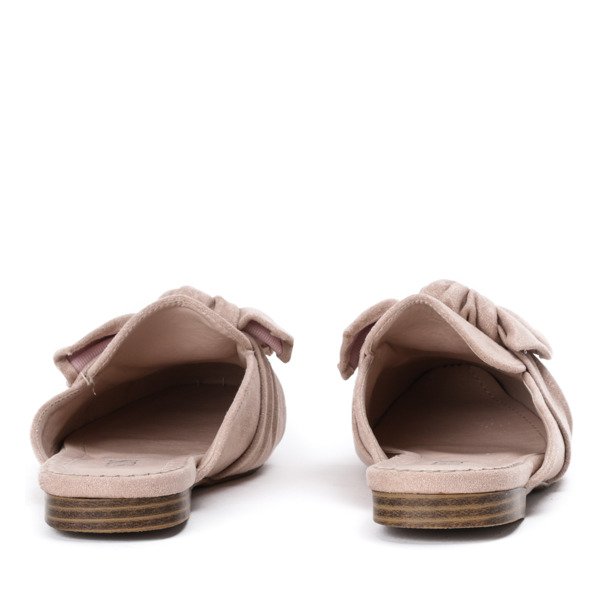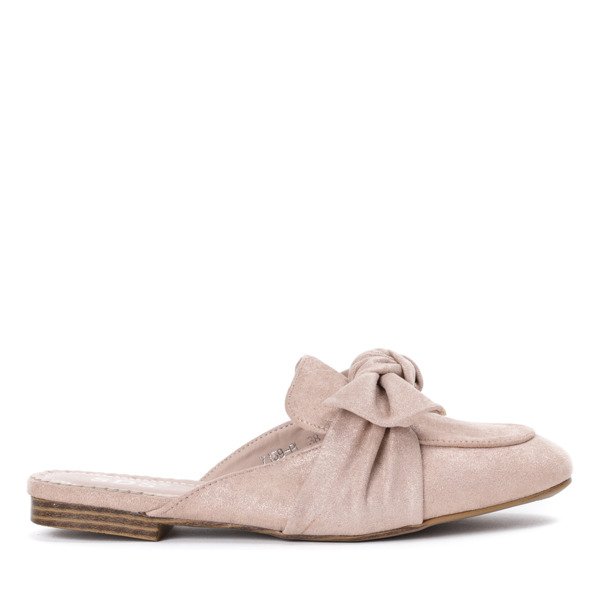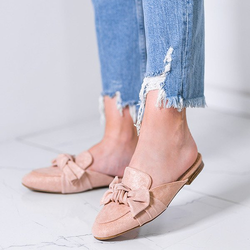 Różowe klapki z eko - zamszu z kokardką Lourdes - Obuwie