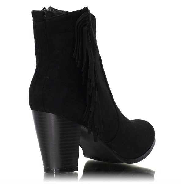 - Rewelacyjne botki na stabilnym słupku wykonane z eko-zamszu. Model zasuwany na suwak. W środku delikatne ocieplenie. Cholewka zdobiona frędzlami. Bardzo wygodne i solidnie wykonane.