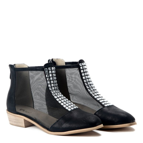 - Ekstrawaganckie botki wykonane z połączenia siatki i eko skóry. Na przodzie błyszczące kamyczki. Nikt nie przejdzie obok Ciebie obojętnie, gdy zobaczy te buty. Dodatkowo są bardzo wygodne i solidnie wykonane.