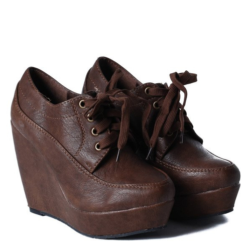 • Wysokie półbuty na koturnie dopełnią idealnie Twoją stylizację. Najlepiej prezentują się z dopasowanymi spodniami. Model sznurowany na grube sznurowadła.