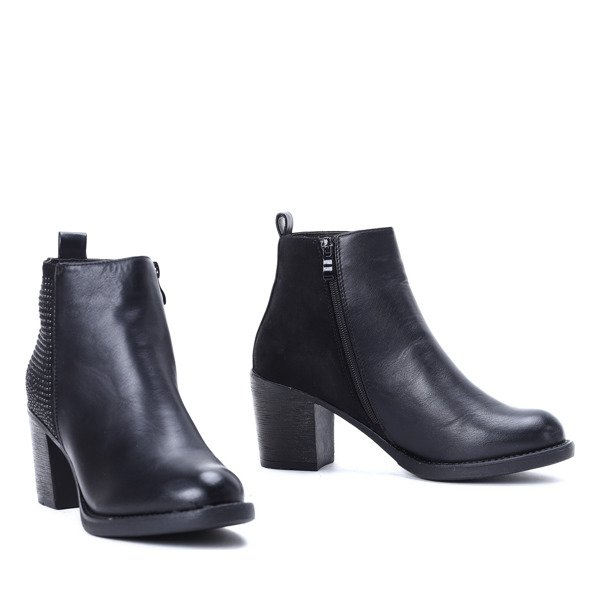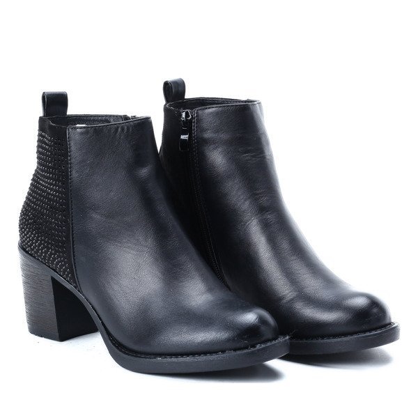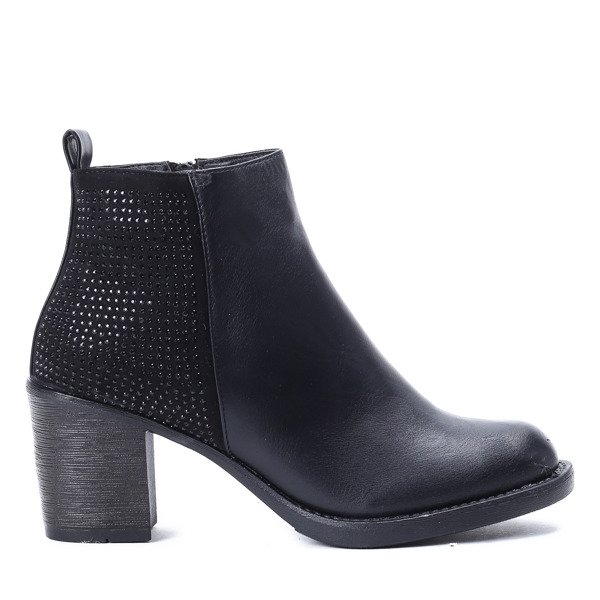 Czarne botki na słupku z ozdobnymi dżetami - Obuwie