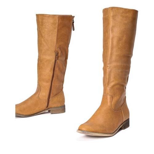 Brązowe kozaki na płaskim obcasie Reyana - Obuwie