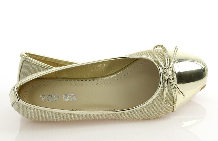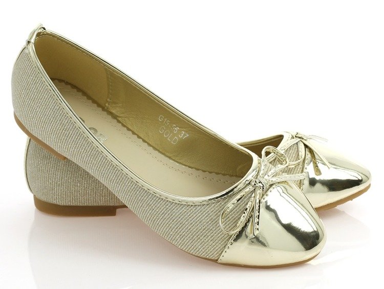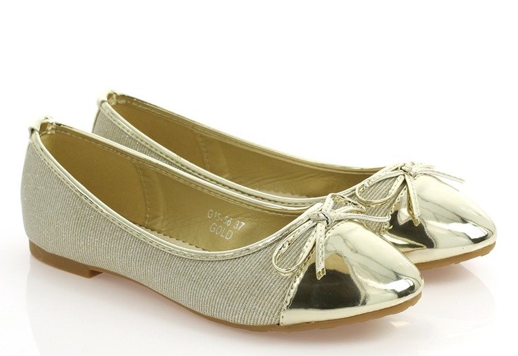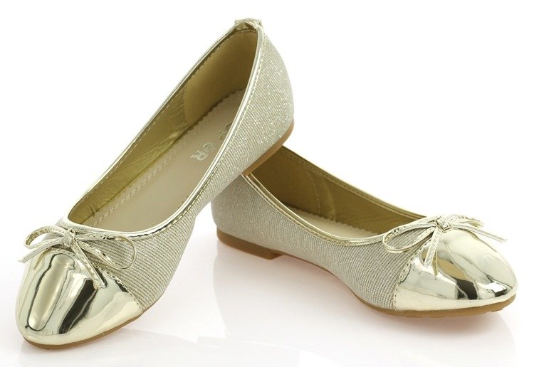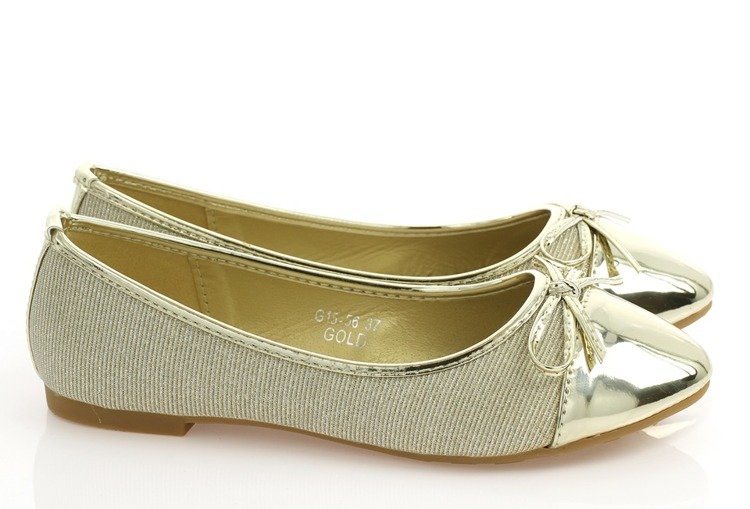 Złote baleriny z lakierowanym noskiem - Obuwie