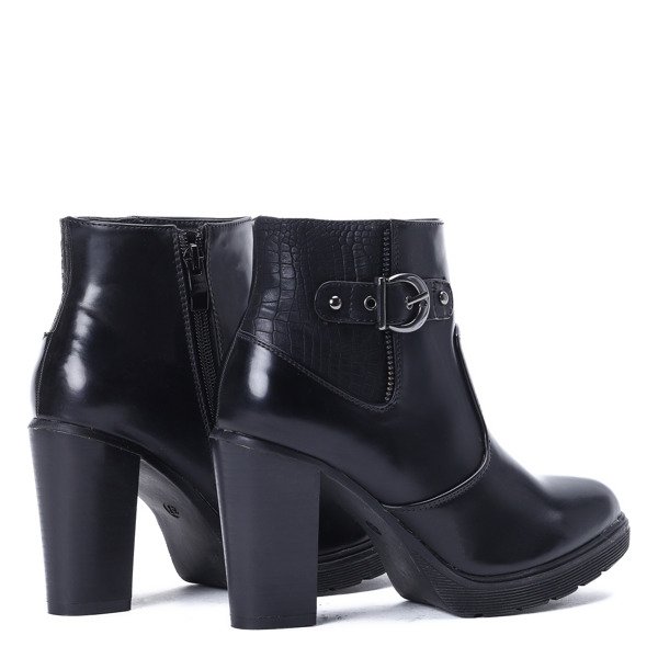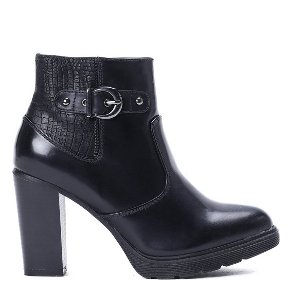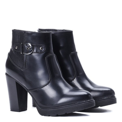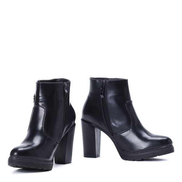 Czarne botki na słupku Poalina - Obuwie