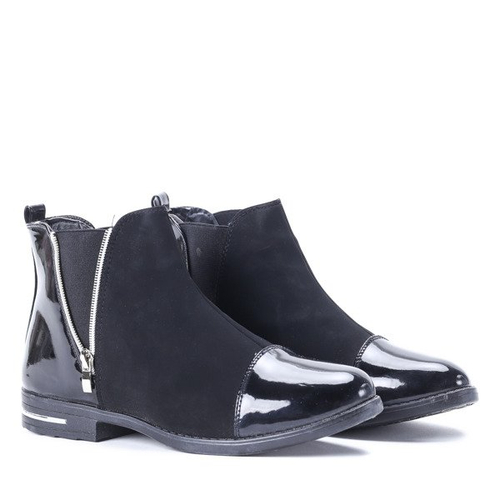 Czarne botki zamsz/skóra ekologiczna - Obuwie