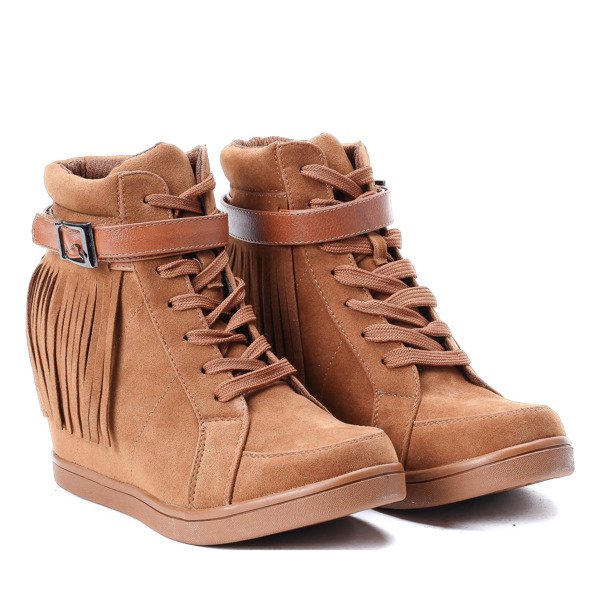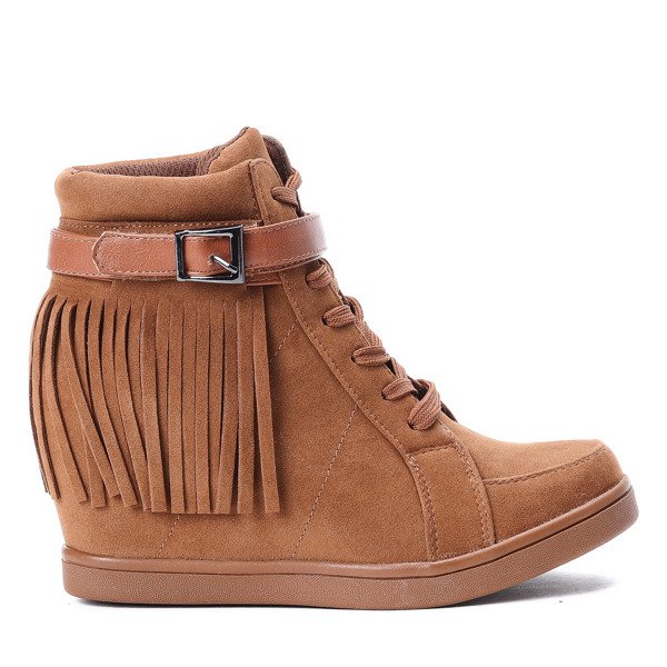 Botki na koturnie - kolor camel - Obuwie