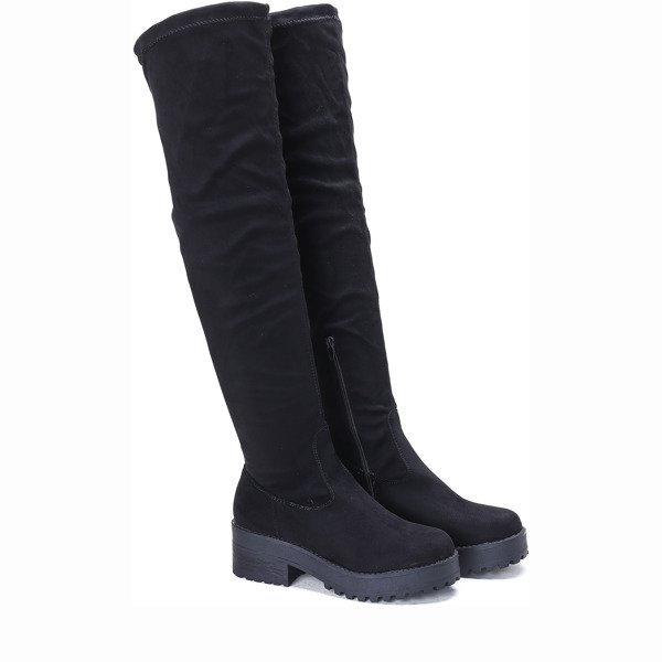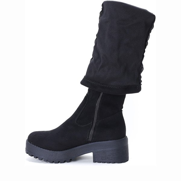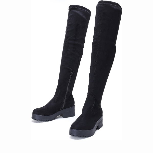 - Długie kozaki wykonane z zamszu. Piękny krój z krótkim zamkiem ułatwiającym zakładanie. Polecane szczególnie do sukienek lub spodni z wąskimi nogawkami.
