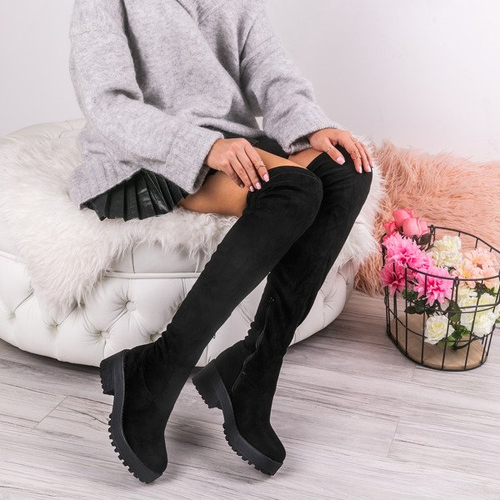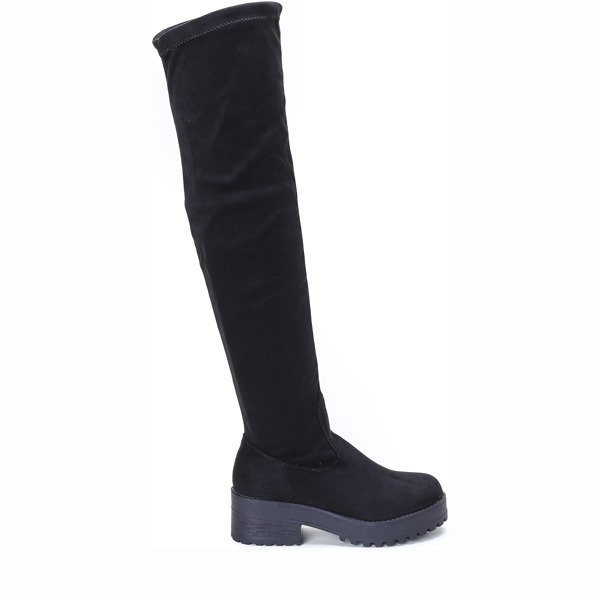 Czarne, długie kozaki na słupku 6 cm - Obuwie
