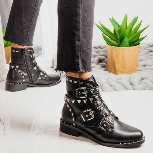 Czarne workery z ćwiekami Ismeralda - Obuwie