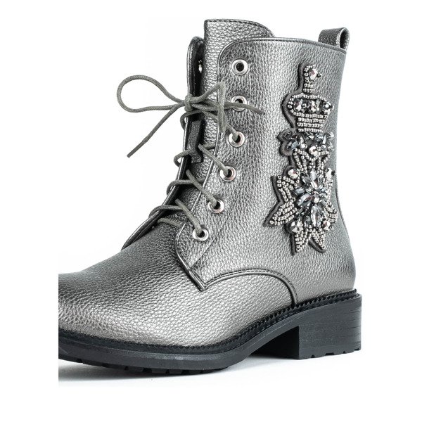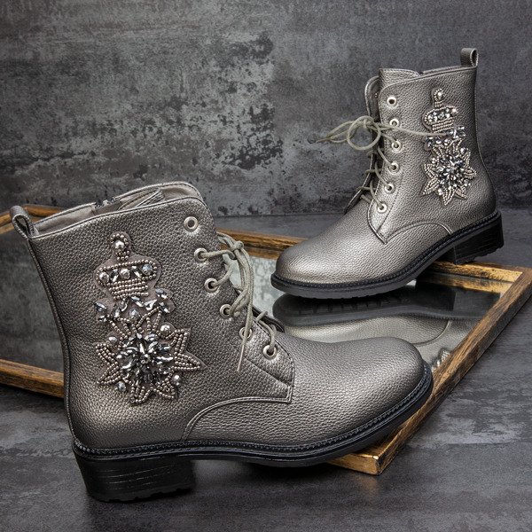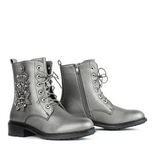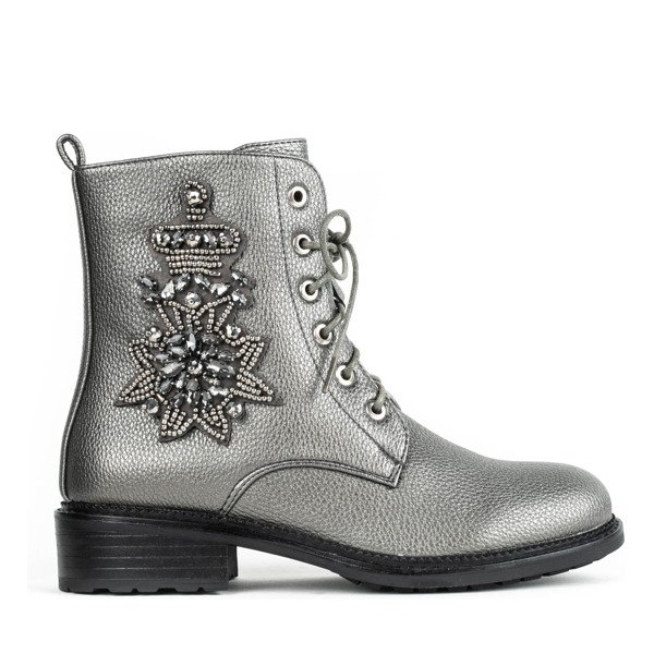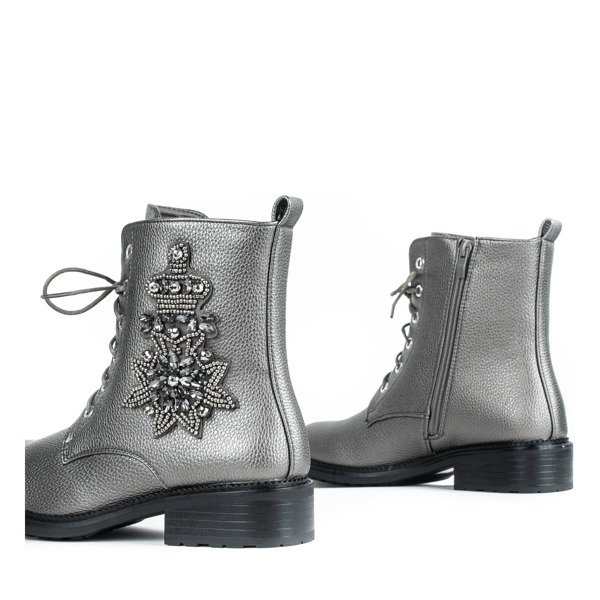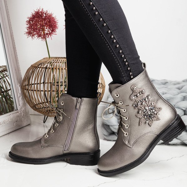 Szare workery z ozdobą Felicitas - Obuwie