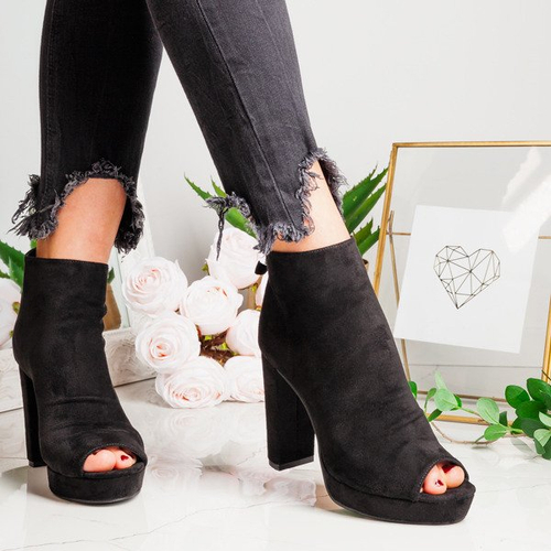 - Rewelacyjne buty damskie na wysokim słupku, wykonane z ekologicznego zamszu w kolorze czarnym. Cholewka z wycięciem w palcach. Z tyłu posiadają zapięcie w formie suwaka. Botki sprawdzą się zarówno do eleganckich jak i codziennych stylizacji!