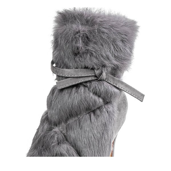 - Efektowne botki na szpilce wykonane z eko-zamszu w kolorze szarym. Obuwie damskie jest zapinane na zamek po wewnętrznej stronie. Wkładka buta jest wykonana z eko-skóry. Miłe w dotyku futerko umieszczone na cholewce dodaje interesującego wyglądu!