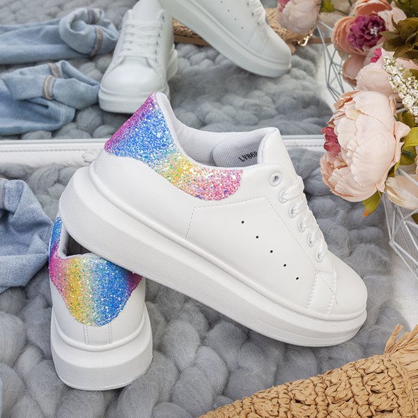 Białe sportowe tenisówki z brokatową wstawką Tricky - Obuwie