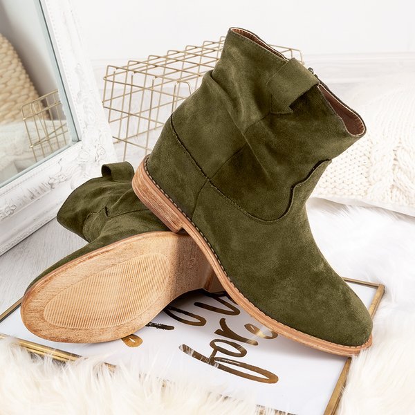 - Cizme de cowboy verzi a'la din piele ecologică de piele de căprioară. Modelul este izolat cu o blană moale în interior. Încălțăminte pe toc înclinat, acoperit. Încălțăminte fixate cu fermoar. Perfect pentru zilele mai reci.