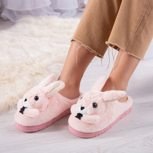 Jasnoróżowe kapcie z króliczkiem Masia - Obuwie