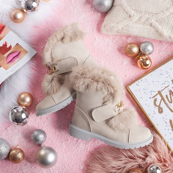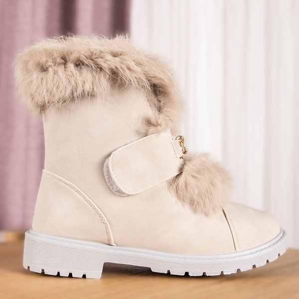 Beżowe botki z futerkiem Wiscon - Obuwie
