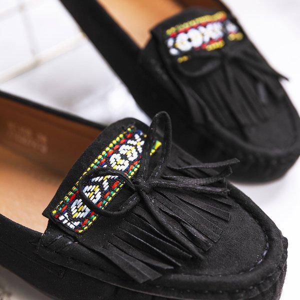 Mocasini negri cu franjuri Kaddo - Încălțăminte