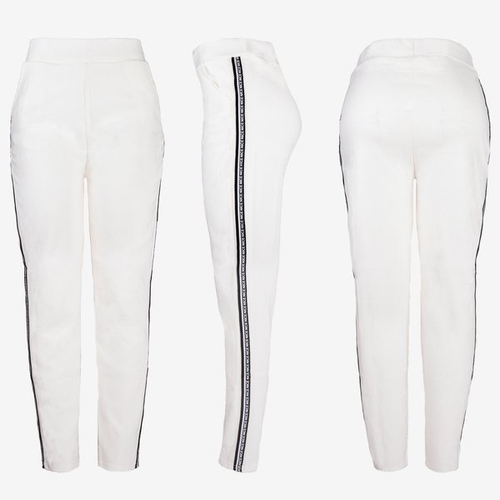 Białe damskie spodnie dresowe z lampasami - Spodnie