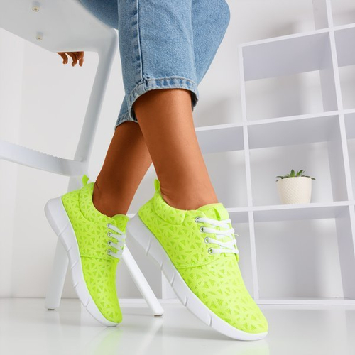 Neonowe zielone sportowe buty damskie we wzorki Troye - Obuwie