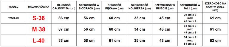 Tabela rozmiarów - przed zakupem sprawdź rozmiarówkę!