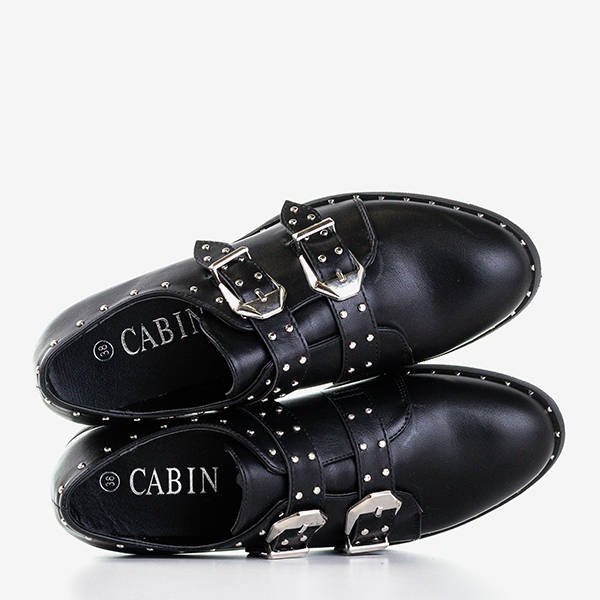- Rewelacyjne półbuty damskie wykonane ze skóry ekologicznej w kolorze czarnym. Cholewka wykończona drobnymi srebrnymi dżetami. Model zapinany dwiema klamrami. Idealnie się sprawdzą do eleganckich i modnych stylizacji!