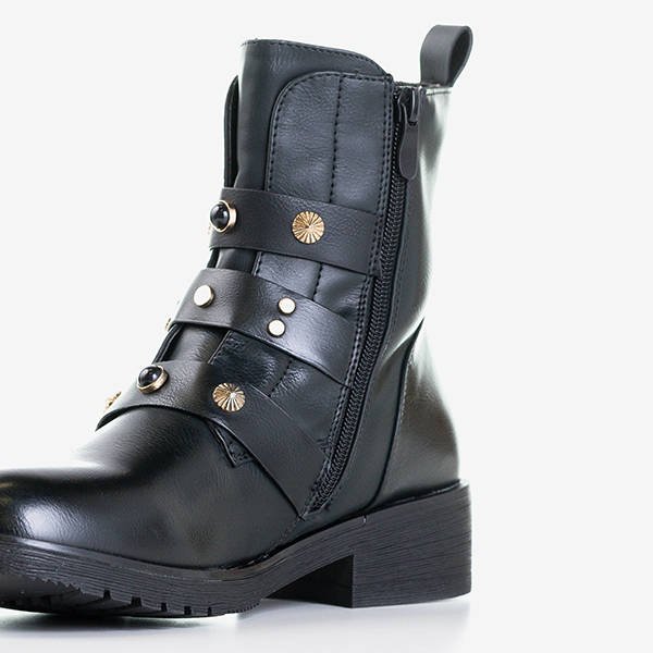 Czarne damskie workery ze złotymi klamrami Sytielia - Obuwie