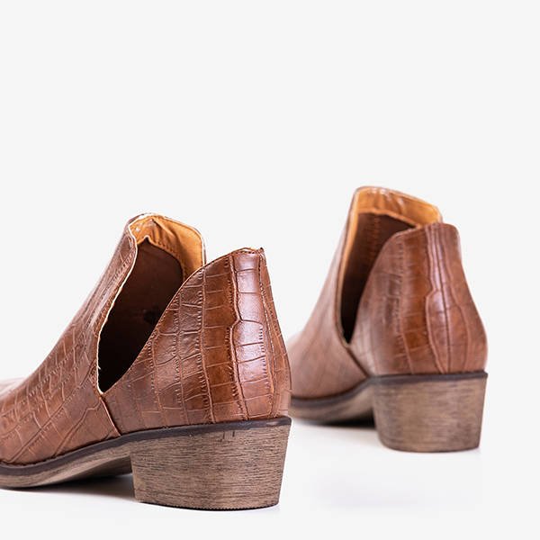 Brązowe wężowe półbuty z wycięciami Piksena - Obuwie