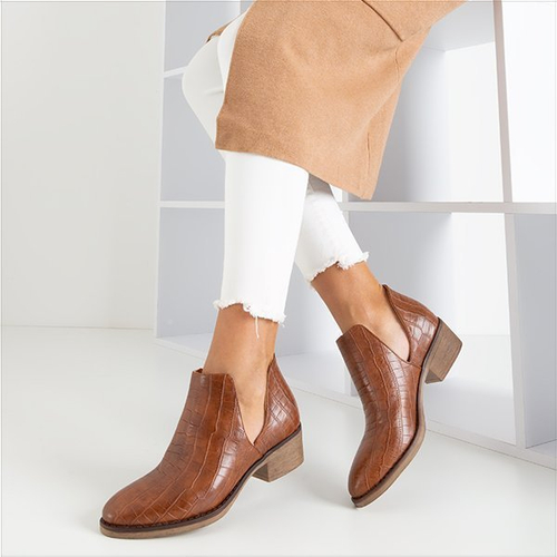 • Stylowe damskie półbuty na płaskim obcasie, z wycięciami na cholewce. Materiał wykonania - skóra ekologiczna a'la skóra węża, wkładka jest pokryta skórą ekologiczną. Model nie posiada zapięcia. Idealne do wielu codziennych stylizacji.