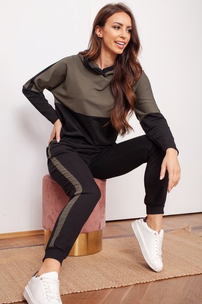 Set de trening pentru femei negru și verde cu dungi - Îmbrăcăminte