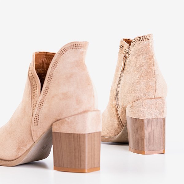 Cizme maro deschis cu toc pătrat Lemere - Încălțăminte