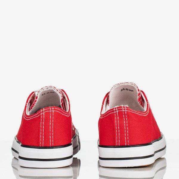 • Adidași roșii de damă din material textil. Model cu dantelă. Cauciuc unic. Perfect pentru utilizarea de zi cu zi. NOTĂ: Modelul poate avea lipici pe material. Notă: produsul are zgârieturi pe material.
