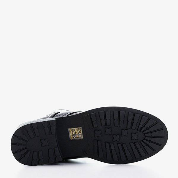 Czarne lakierowane damskie botki typu workery z kamyczkami Nissioe - Obuwie
