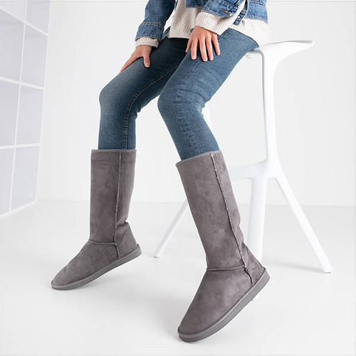 - Cizme de zăpadă extra calde, cu talpă plată gri. Materialul este realizat din piele de căprioară ecologică. Au izolatie de blana la interior. Pantofi perfecti pentru zilele mai reci!