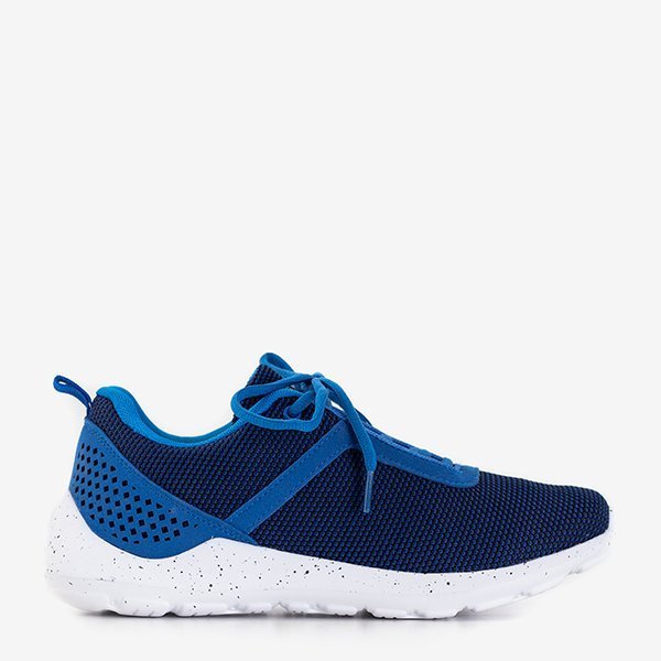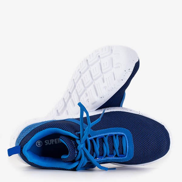 - Încălțăminte sport originală pentru femei, albastru marin, cu inserții albastre. Partea superioară dantelată, realizată dintr-o combinație de plasă și piele ajurată din piele ecologică. O inserție de țesătură în interior. Talpa alba din cauciuc cu pete. P