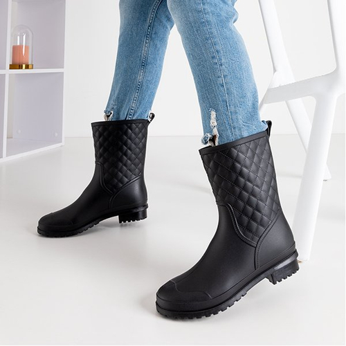 - Cizme de ploaie pentru femei, cu toc plat. Fabricat din cauciuc mat. Partea superioară matlasată. Indispensabil pentru zilele ploioase de toamnă.