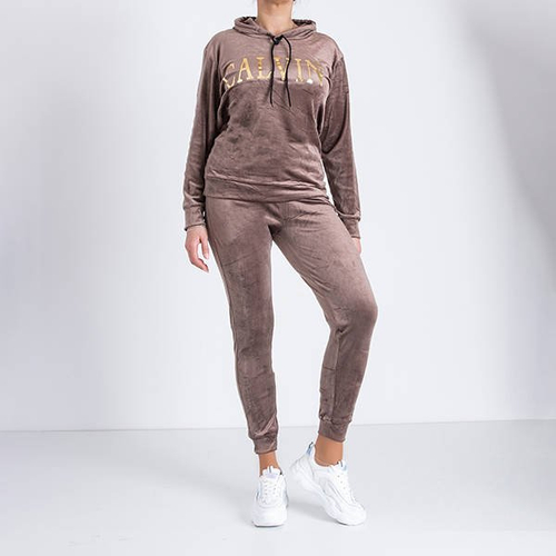 - Set de trening pentru femei confecționat dintr-un material la velor. Hanorac cu glugă, decorat cu o inscripție sclipitoare. Pantaloni cu talie elastică și buzunare. Treninguri perfecte pentru o călătorie! NOTĂ: Precizia măsurării (+/-) 1 cm.