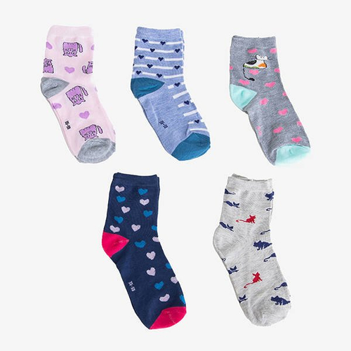 - Șosete colorate pentru gleznă pentru copii din material de bumbac. Decorat cu o imprimare în: inimi, pisici, modele. Șosetele vor fi perfecte pentru serile mai reci!