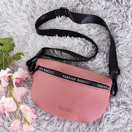 - O geantă mică pentru rinichi din piele ecologică. La mijloc, un buzunar suplimentar cu fermoar. Curea reglabilă
