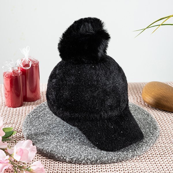 Șapcă neagră pentru femei cu pompon - Șepci
