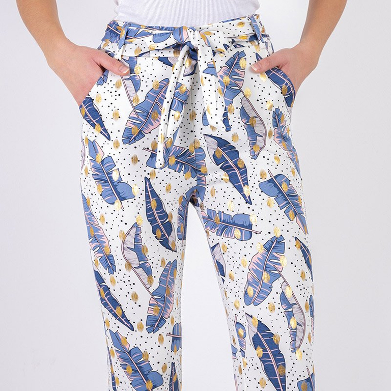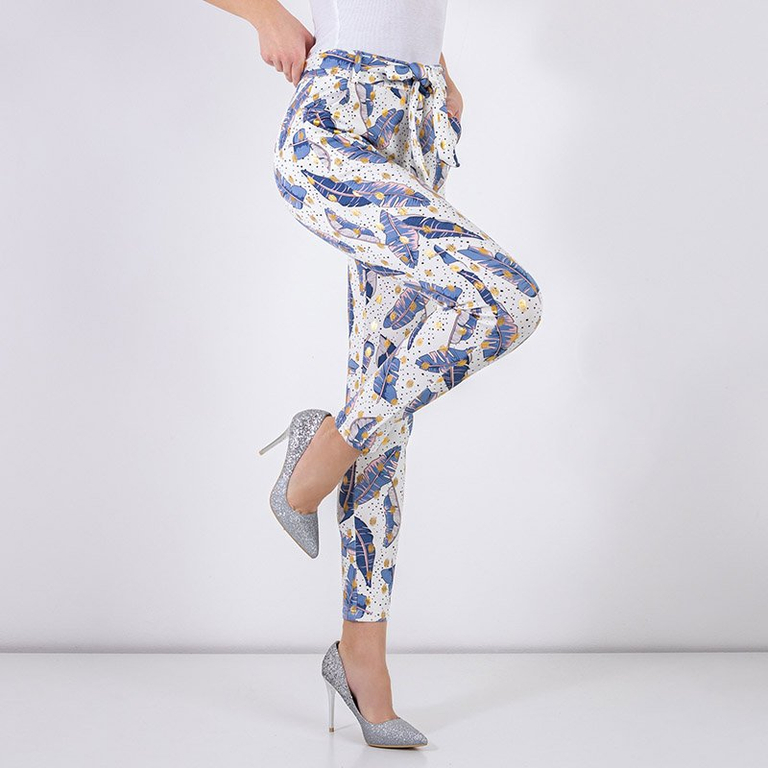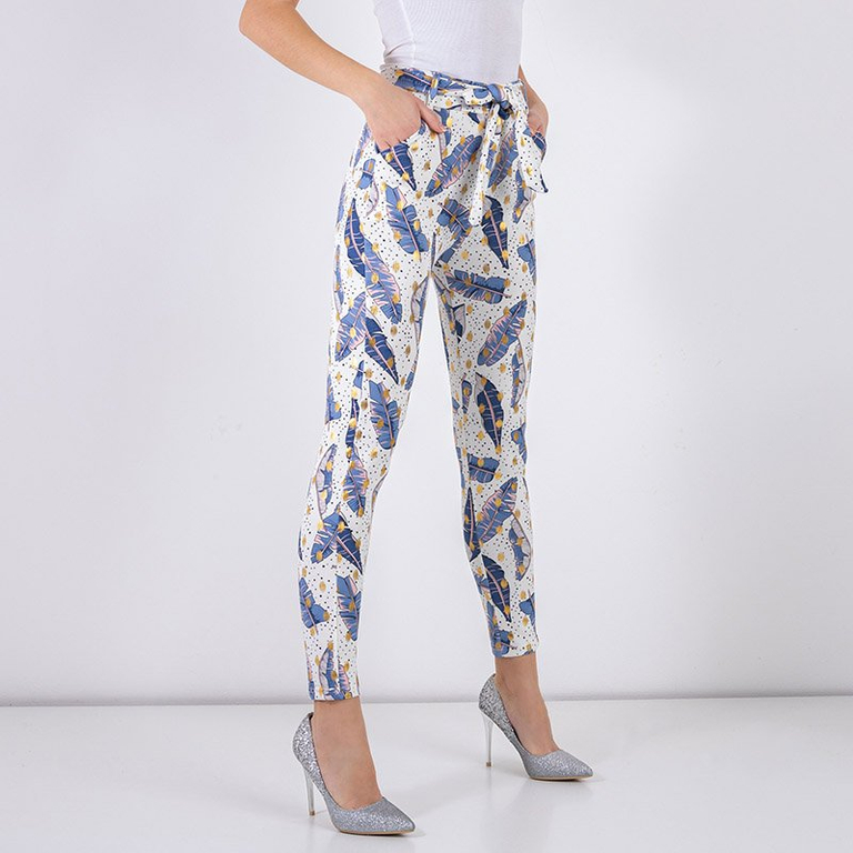 - Pantaloni eleganți pentru femei din țesătură elastică cu pene. Modelul are o talie elastică, două buzunare alunecoase și o centură de culoare asortată. Accesoriul perfect pentru cămașa ta! NOTĂ: Precizia măsurării (+/-) 1 cm