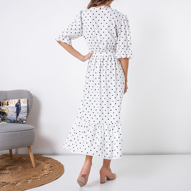 Rochie lungă albă cu buline pentru femei - Îmbrăcăminte