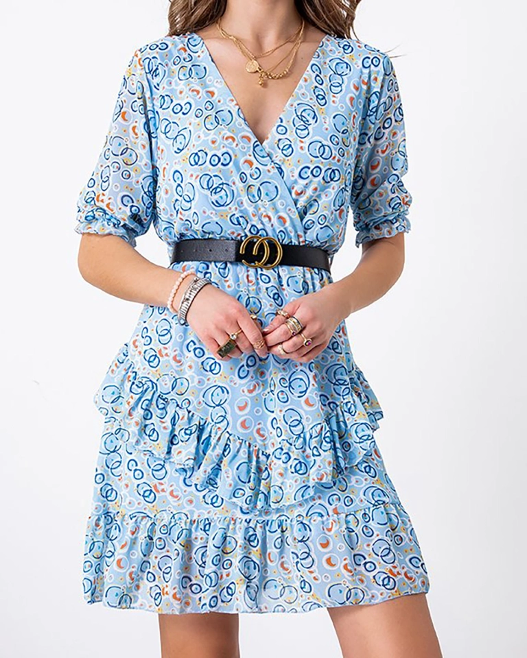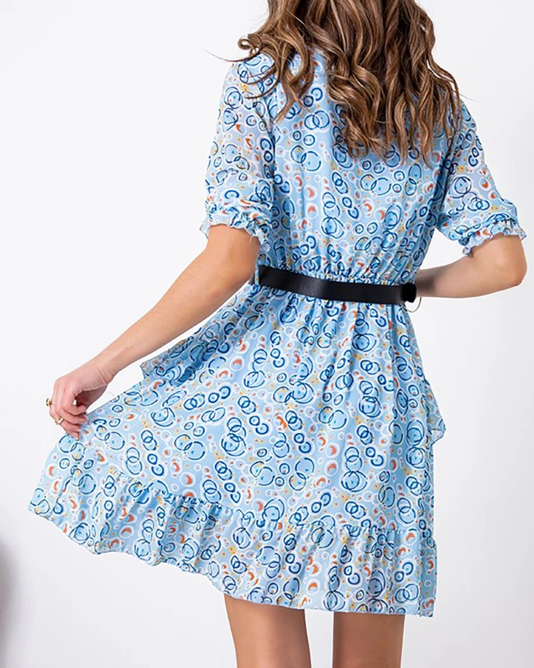 - Rochie la modă pentru femei, cu o lungime mini, realizată din țesătură ușoară cu modele. Model cu decolteu plic și fundul evazat decorat cu bibelouri. Manșoane 3/4, o centură este atașată la produs. NOTĂ: Precizia măsurării (+/-) 1 cm.