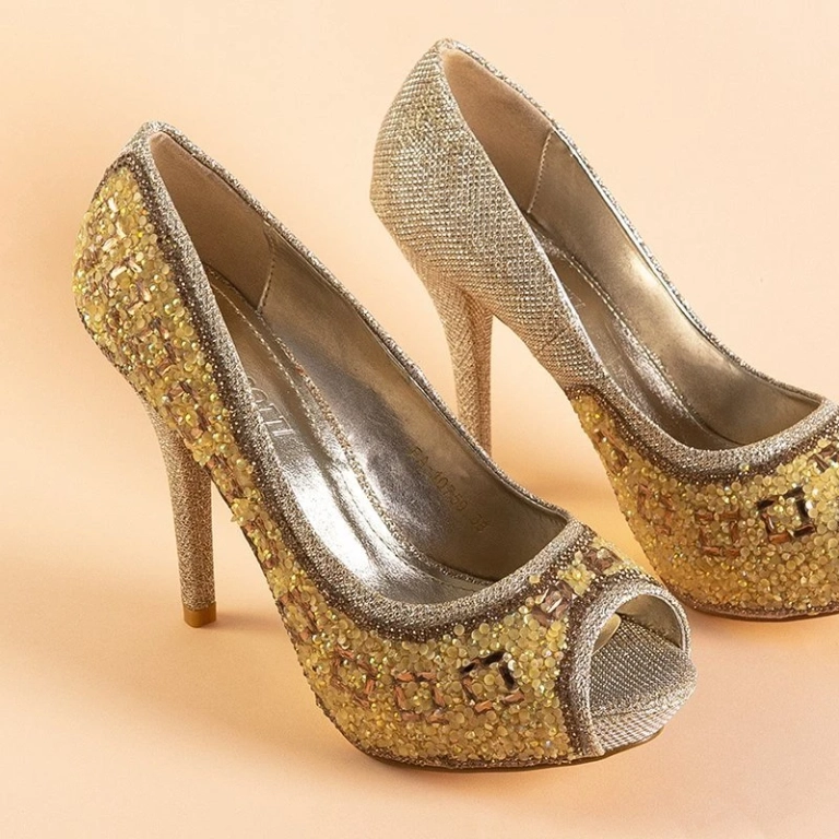 OUTLET Pompă de aur de aur cu ornamente Verdad - Încălțăminte