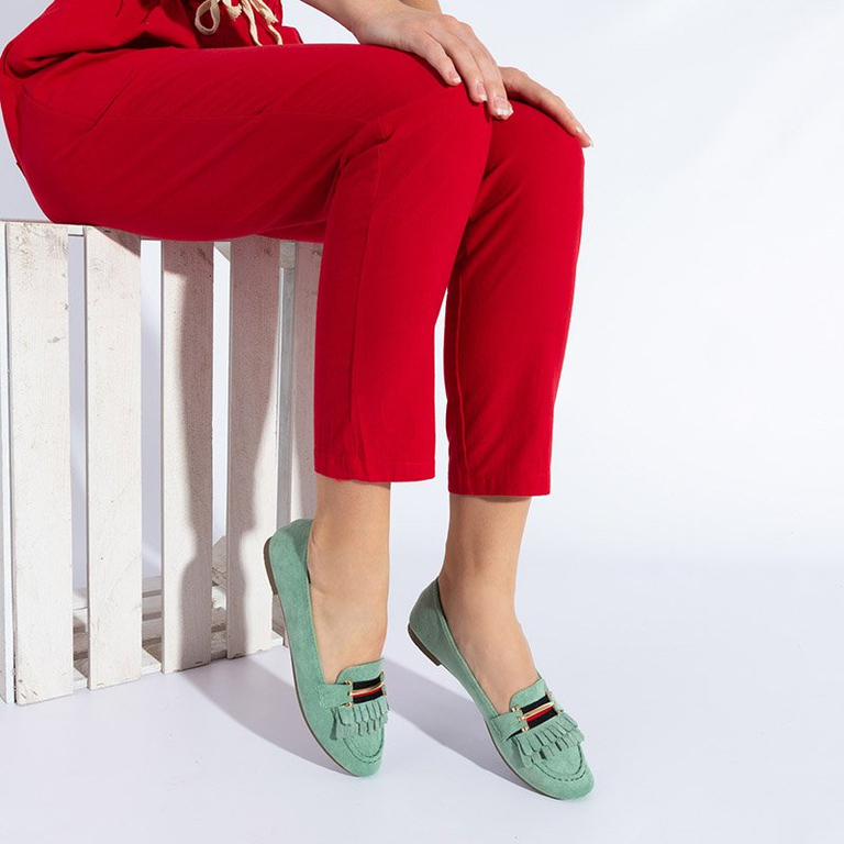 Mocasini pentru femei Morisa cu franjuri verzi - Încălțăminte