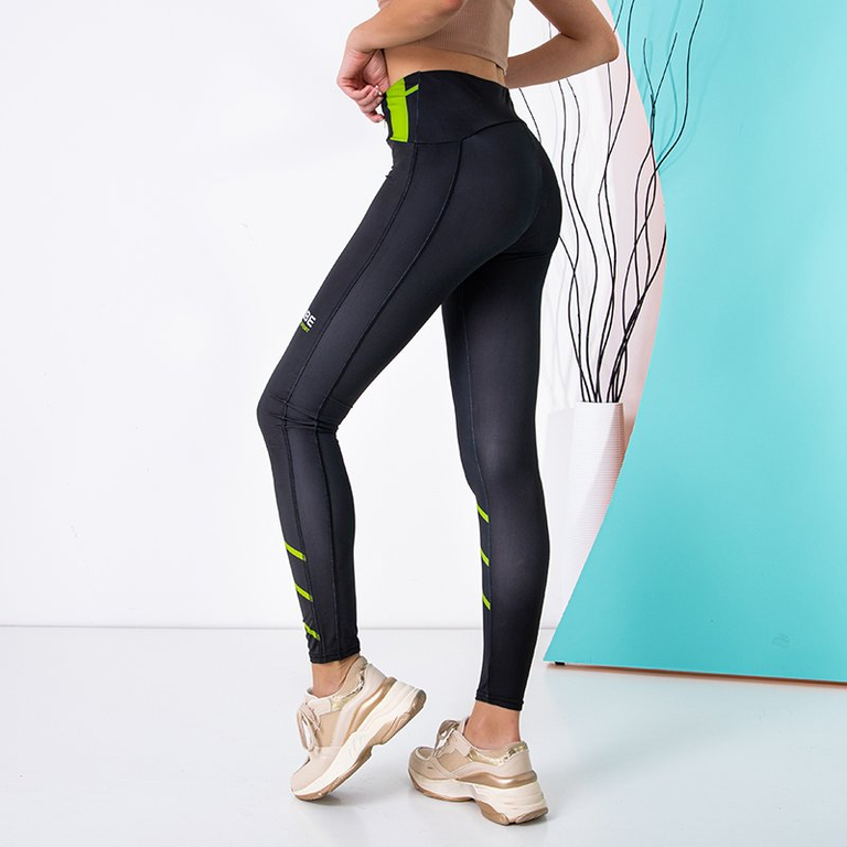 Jambiere negre cu inserții verzi - Îmbrăcăminte
