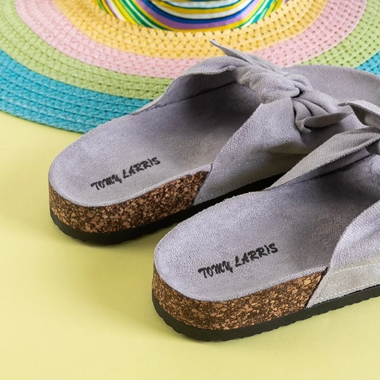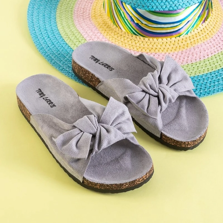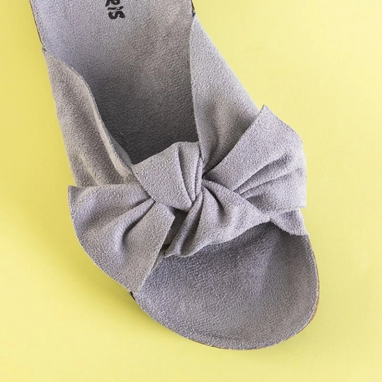 OUTLET Papuci de damă gri deschis cu fundă Alanza - Pantofi