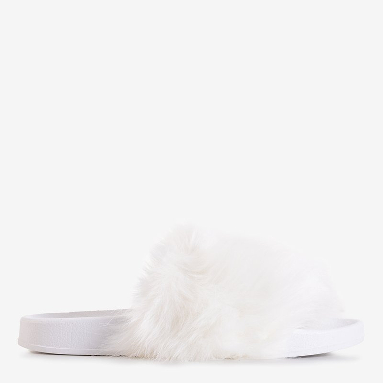 Papuci albi pentru femei cu blană Danita - Încălțăminte